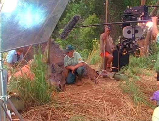 Po dvoch rokoch strávených prípravami koncepcie filmu, úpravami scenára a výrobou modelov dinosaurov sa Jurský Park konečne dostal pred filmové kamery. Došlo k tomu na ostrove Kauai, kde okrem natáčania klasických scén vo voľnej prírode mali byť natočené aj zábery, ktoré neskôr poslúžia ako pozadie pre dinosaury vytvorené počítačom. Prvými dinosaurami, ktoré diváci spolu s návštevníkmi Jurského Parku uvideli, boli obrovskí Brachiosauri pasúci sa na pätnásť metrov vysokých stromoch. Aby tvorcovia skoordinovali pozadie so smerom, ktorým sa herci pozerajú museli použiť pätnásťmetrové stĺpy pre ohraničenie scény. Ďalším krokom ako vytvoriť pozadie pre ešte neexistujúce digitálne dinosaury bola séria originálne pôsobiacich a vymyslených gagov realizovaných štábom pre zvláštne efekty. Príkladom bol záber Brachiosaura, ktorý trhá lístie zo stromu. Technici pripojili ku skutočnému stromu drôty, za ktoré mohli ťahať a ohnúť tak korunu stromu. Potom tým počítačových grafikov zasadil počítačového dinosaura do scény. V tejto sekvencii sú zvieratá predvedené v dlhých, pomaly plynúcich záberoch, ktoré výrazne kontrastujú s rýchlymi strihmi, typickými pre tento film. Dennis Muren z ILM vysvetľuje: „Chceli sme, aby tieto zábery boli dlhé, pretože umožnili dobre ukázať herecké výkony zvierat. Mohli sme si to vďaka počítačovej grafike dovoliť, lebo animátor môže tak dlho vylepšovať, až je to dokonalé. To nie je ako pri natáčaní po okienku, kde ste stratení ak pokazíte pár záberov, alebo s pohyblivými modelmi, ktoré musíte nekonečne dlho programovať, alebo robotický postup, kde sa snažíte skoordinovať desať robotov, aby dokázali fungovať dlhšie než štyri sekundy. Tieto zábery plynuli a plynuli, poskytovali divákom pastvu pre oči a filmári nepodliehali žiadnym obmedzeniam.“ Veľkou novinkou, ktorá umožňovala také dlhé zábery, bolo vytvorenie dinosaurej „kože“ pomocou počítača. Aby bolo dosiahnuté dokonalého vzhľadu, muselo byť použitých niekoľko vrstiev textúr. Jedna pre základnú farbu kože, ďalšia pre znázornenie nerovností a nepravidelností a veľa ďalších pre vytvorenie ilúzie, že je koža špinavá alebo vlhká alebo taká aká má byť. To sa urobilo pomocou programu Viewpoint, ktorý umožňuje pracovať s trojrozmerným objektom a otáčať ním tak, aby sa mohla naniesť textúra zo všetkých strán. V záverečných krokoch celého procesu sme zlúčili počítačové prvky s pozadím, ktoré bolo digitalizované. Ďalším krokom boli drobné úpravy vytvorené Parallaxom, ktorý pracuje s dvojrozmernou grafikou. Jednalo sa o opravy ručne maľovaných prvkov ako napríklad tieňovanie, odstránenie káblov, ktoré ostali v zábere.