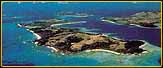 Isla Nublar (oblačný ostrov), obklopený azurovo modrými vodami západne od